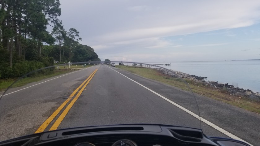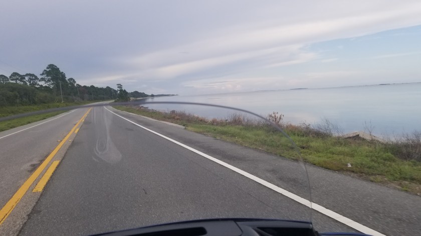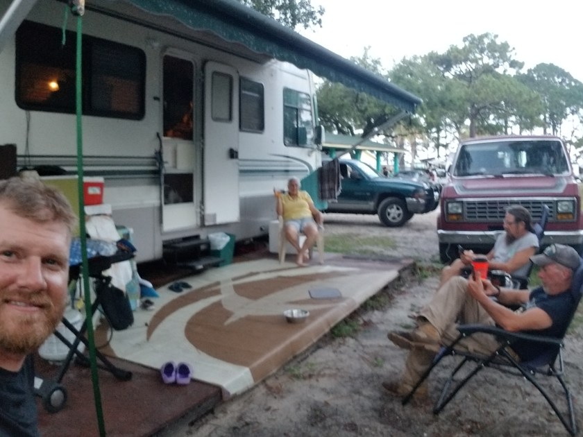 Tonight I met a couple nice gentlemen. I had been wandering the area on my motorcycle for at least 15 miles and an hours worth of time. I could not find a place to camp anywhere. Finally I found an RV park right on the edge of Ochlockonee Bay (don’t worry, I don’t know how to pronounce it either). They were closed. As I’m standing there trying to figure out what my plan is, two guys drive up, roll down their window and ask if they can help. They had seen my Combat Vets patch and being vets themselves, wanted to help. They confirmed that there was in fact tent camping and if I’d just follow them, they’d show me where.